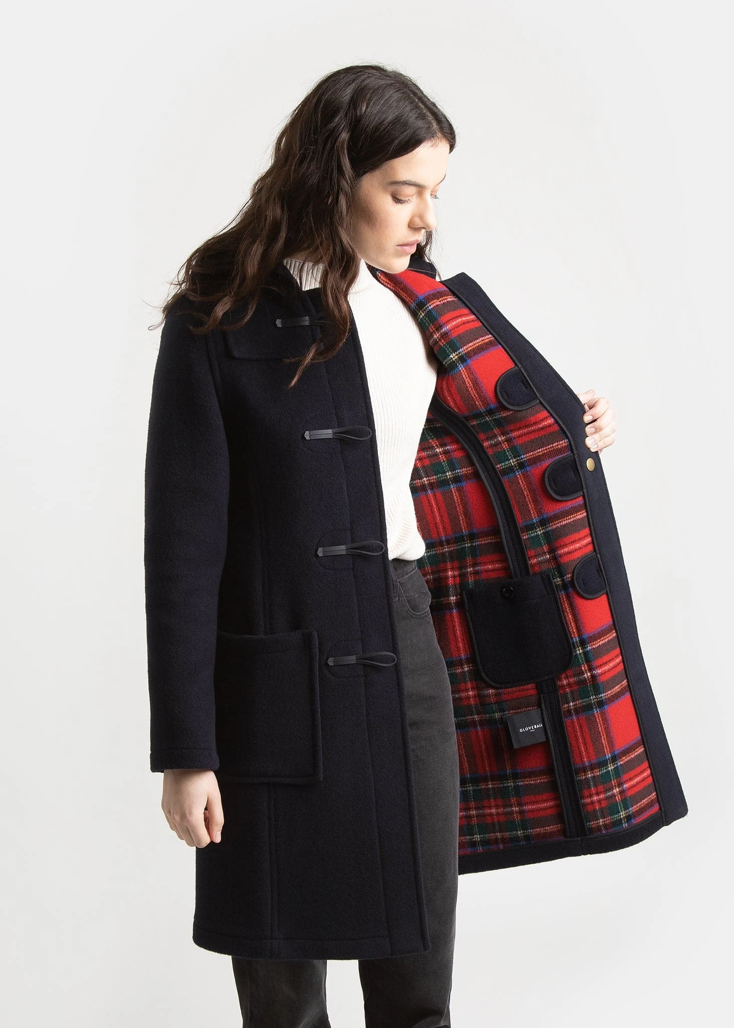 Layer this women’s duffle coat over textured knitwear for a luxurious winter look.