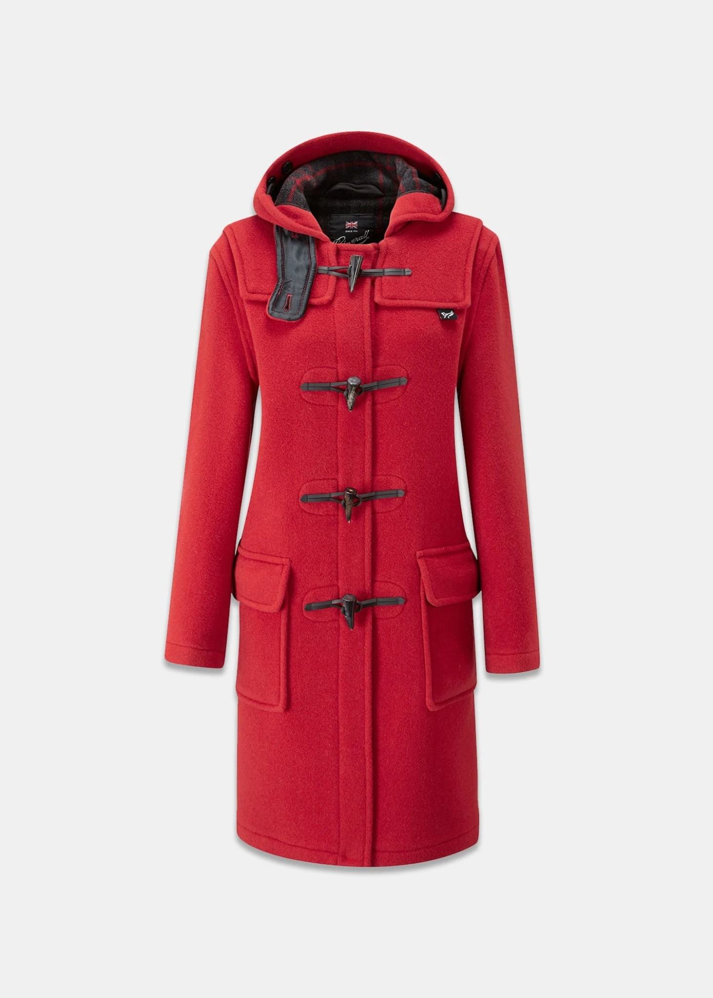 The women’s original duffle features the classic details of a fixed shoulder cape, detachable throat tab and pancake hood to offer protection from the cold.